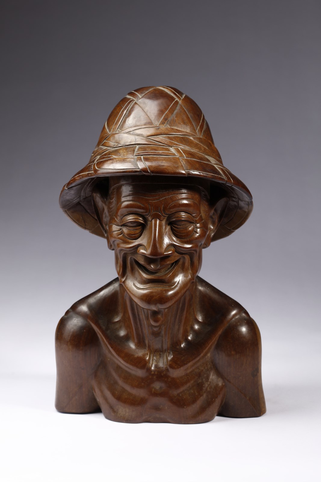 Vietnam, XX secolo. . Cm 24,00 x 38,00. Raffinato intaglio raffigurante un contadino con cappello e petto emaciato dal duro lavoro.