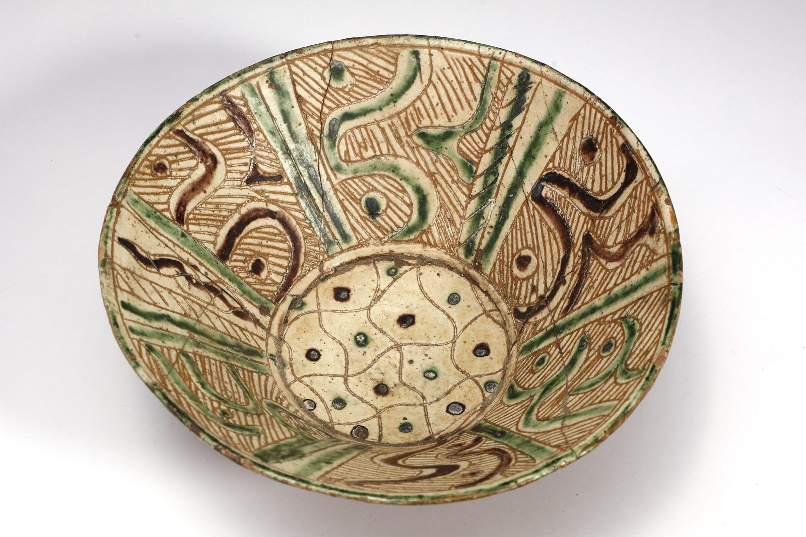 Arte Islamica - Ciotola troncoconica in terracotta lavorata a sgraffito Persia o Asia Centrale, Bamiyan, X secolo .