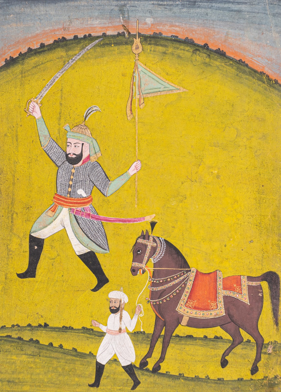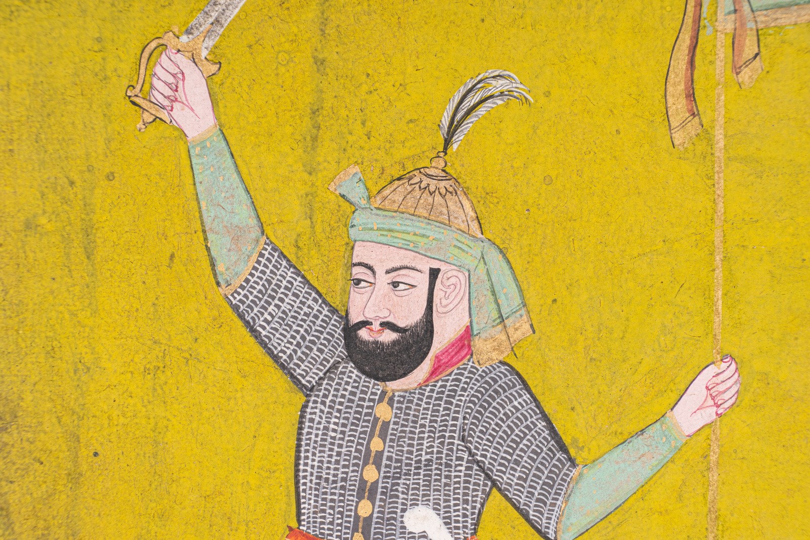 Arte Indiana Miniatura raffigurante guerriero con stalliere