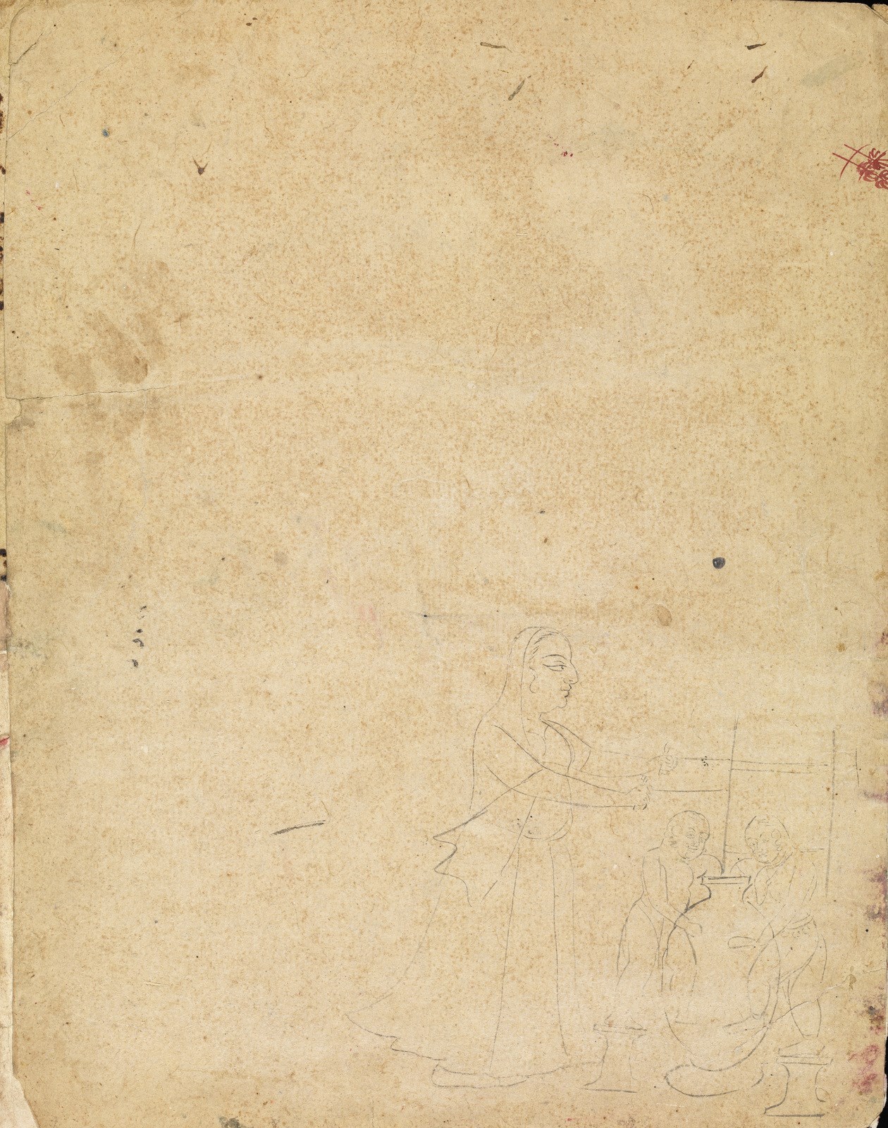 Arte Indiana - Miniatura raffigurante donne su terrazza India Settentrionale, Rajasthan, XX secolo Pigmenti e oro su carta .