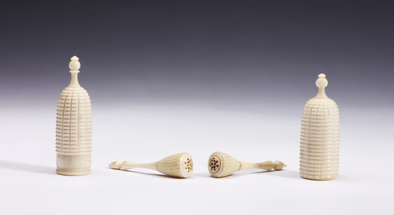 Arte Indiana - Quattro porta profumi Mughal avorio India, XIX secolo .