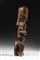 Fang, Gabon. . Cm 10,00 x 39,50. Scultura in legno a patina scura raffigurante figura maschile seduta con le braccia appoggiate sul ventre. Immagini di questo tipo venivano collocate sul Byeri, un contenitore cilindrico all'interno del quale venivano conservate le ossa degli antenati.