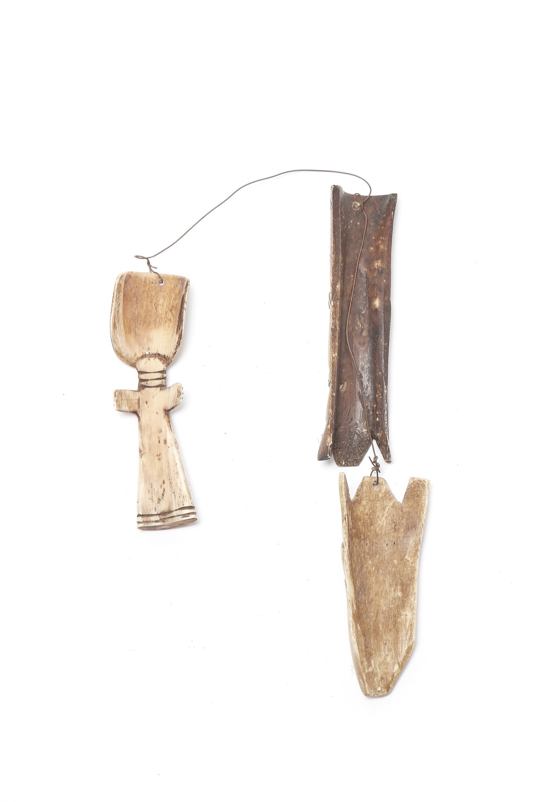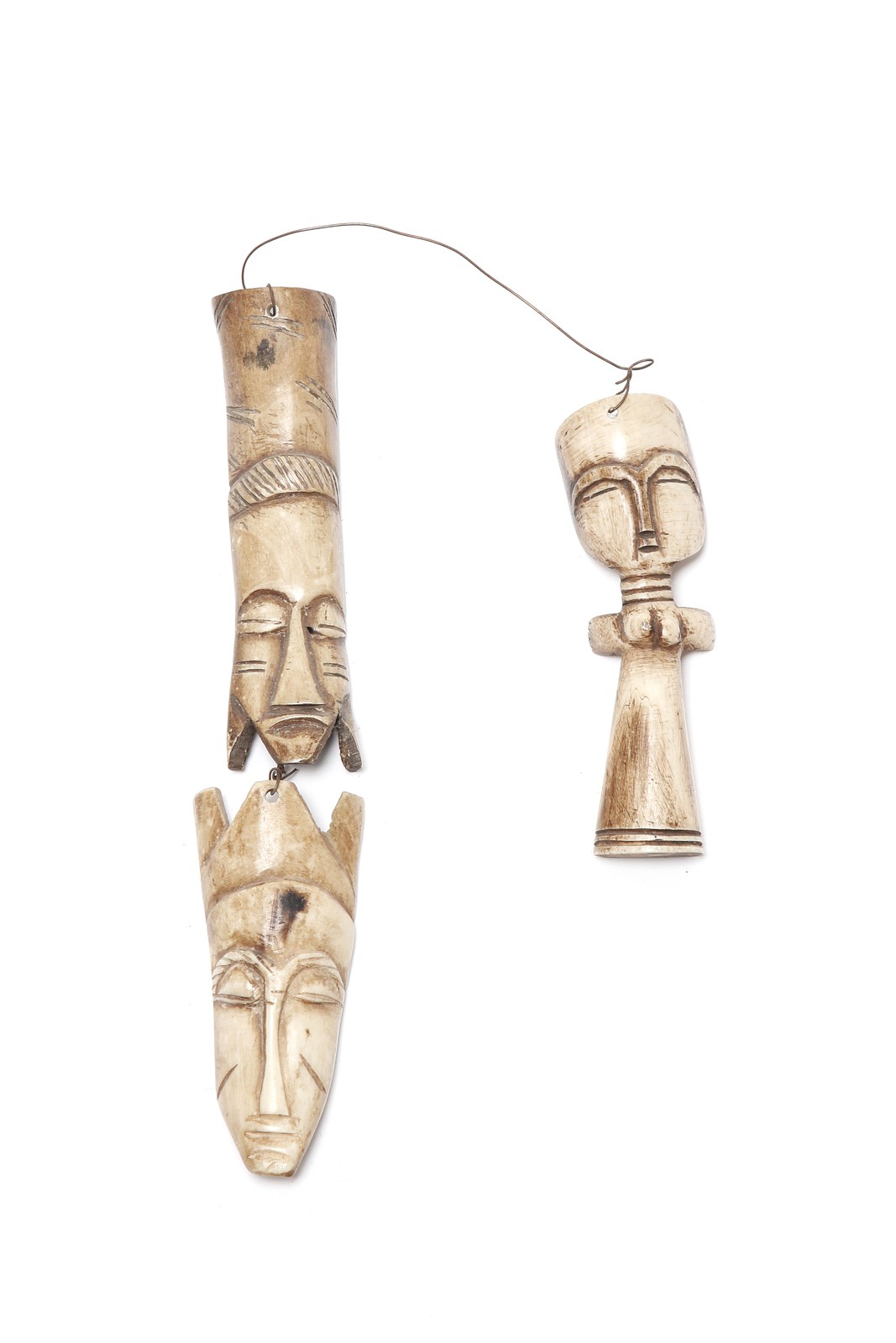 Arte africana - Tre maschere passaporto in osso Rep.Dem.Congo.