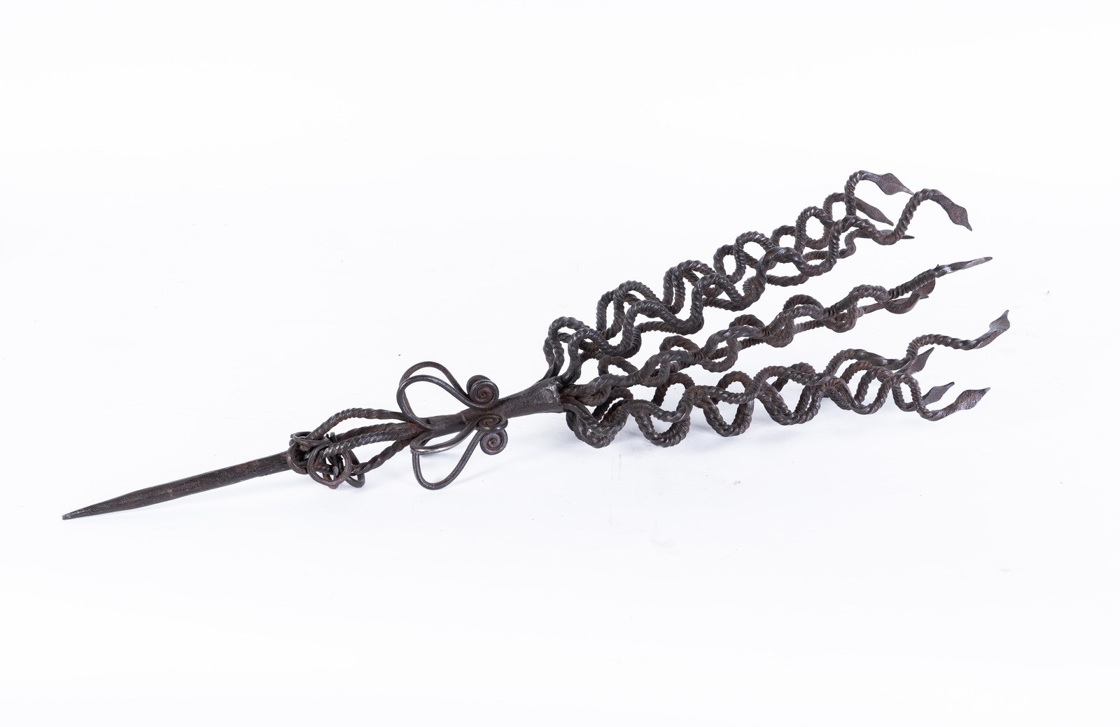 Nigeria. -. Cm 66,00. barra in ferro forgiato a forma di fascio di serpenti che si dipartono, come i rami di un arbusto, da un tronco centrale