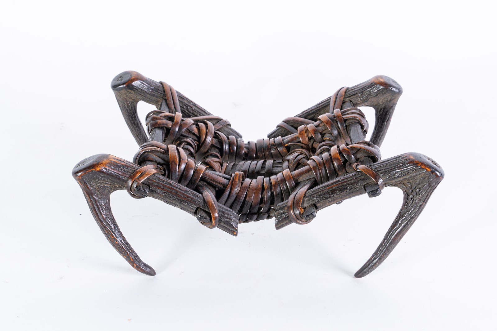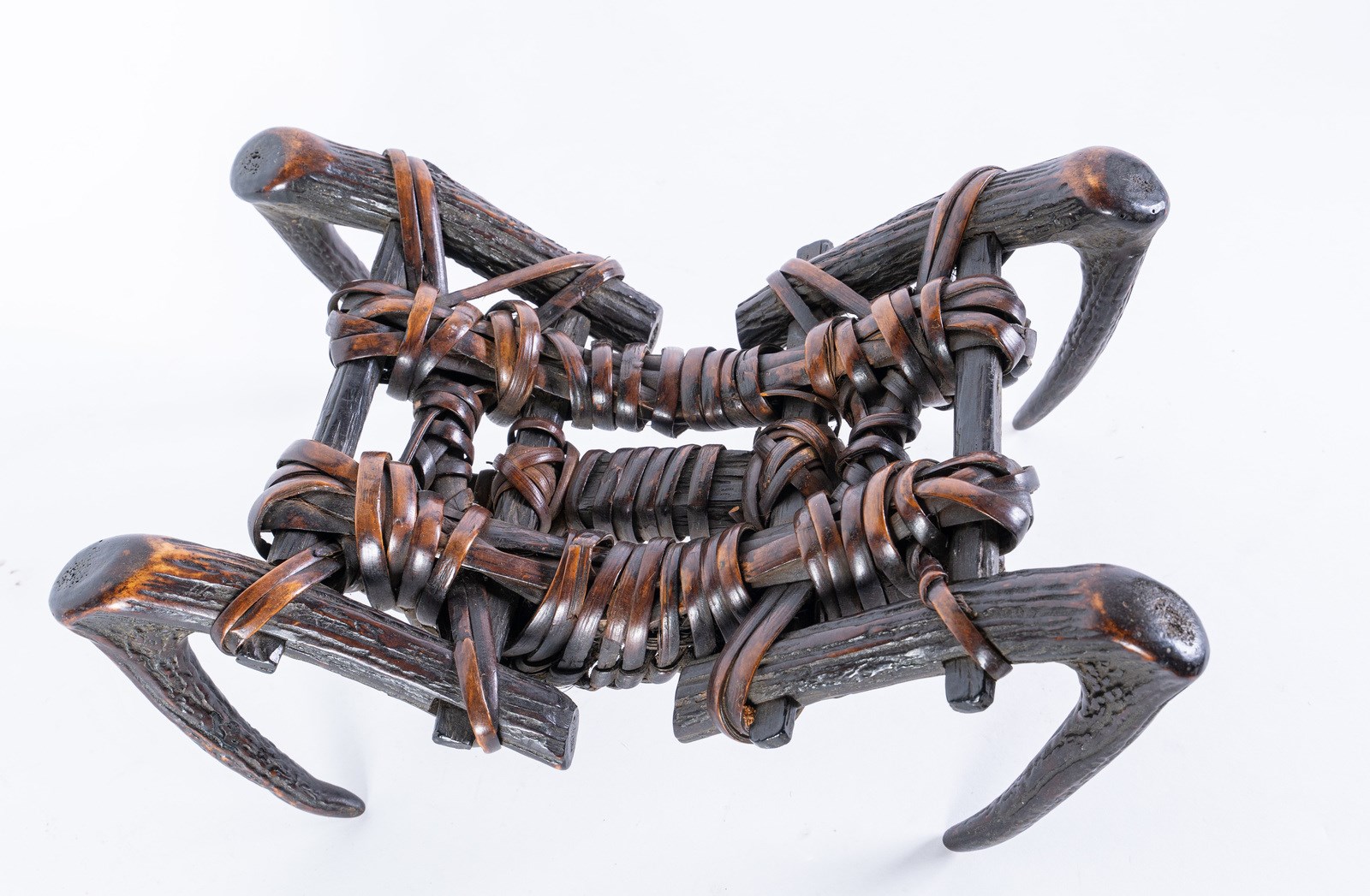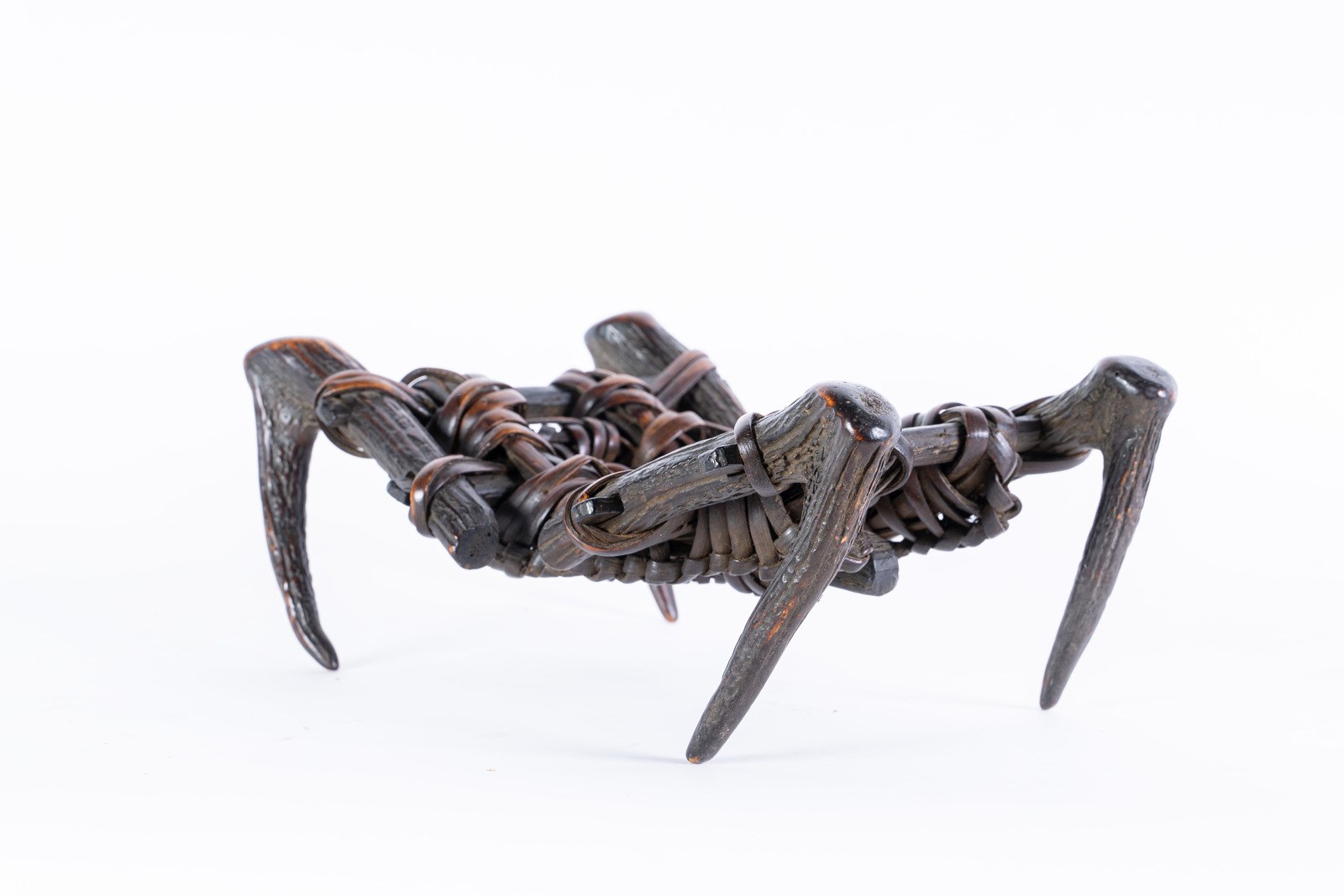 Myanmar. -. Cm 32,00 x 13,00 x 19,00. realizzato con corna di cervo fissate da intreccio in fibra vegetale.