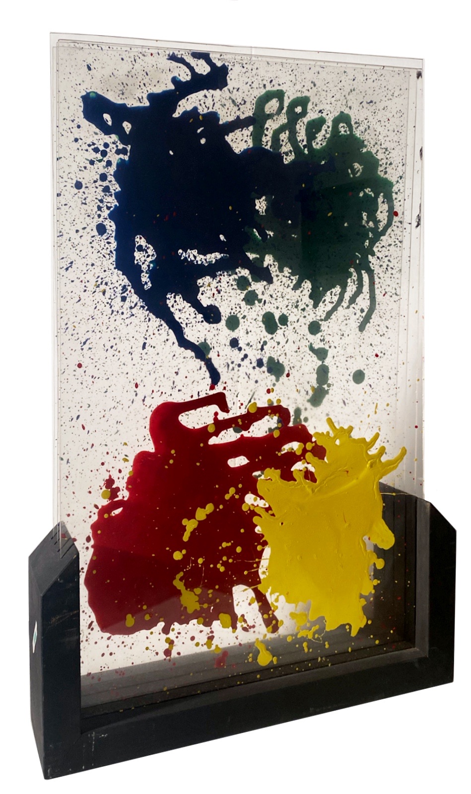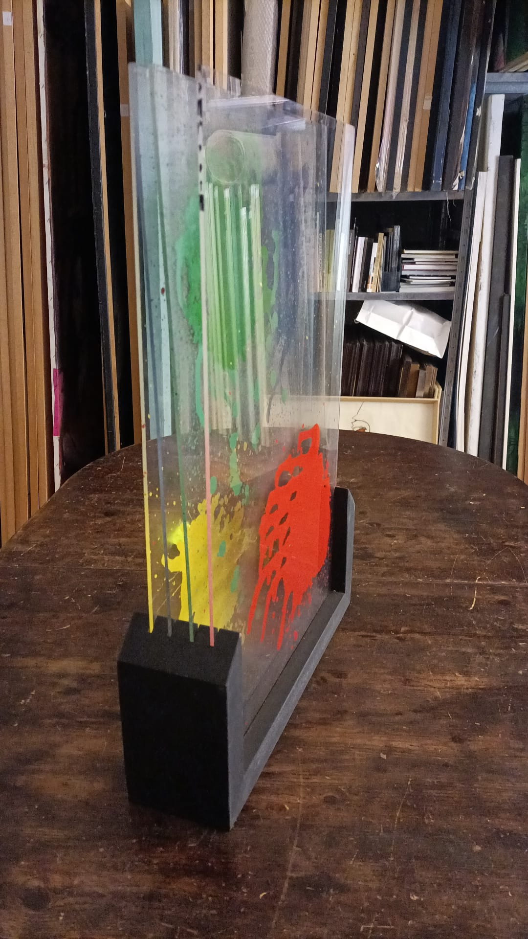 4 fogli di plexiglass dipinto inseriti su base di legno