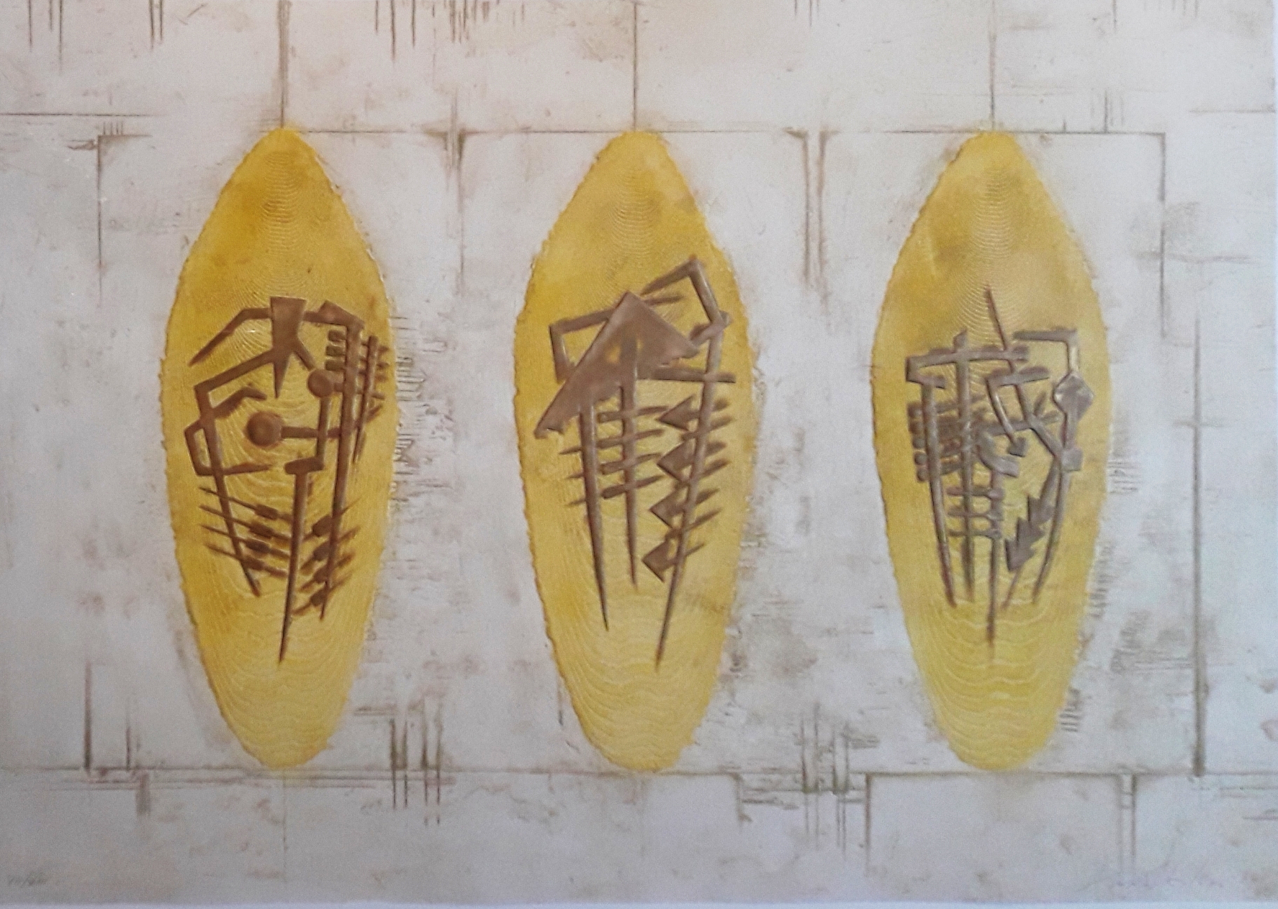 POMODORO ARNALDO Morciano di Romagna 1926 "Senza Titolo” serigrafia e calcografia a rilievo cm 68x96,5 del 1988. Firmato sul fronte in basso a destra.