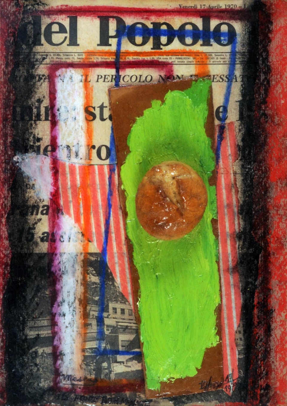 EDOUARD MESENS 1903 - 1971 " Ils font bonmenage ", 1970 Tecnica mista e collage su tavola, cm. 36 x 25,5 x 5 Firmato e datato in basso a destra Prov. Collezione Privata