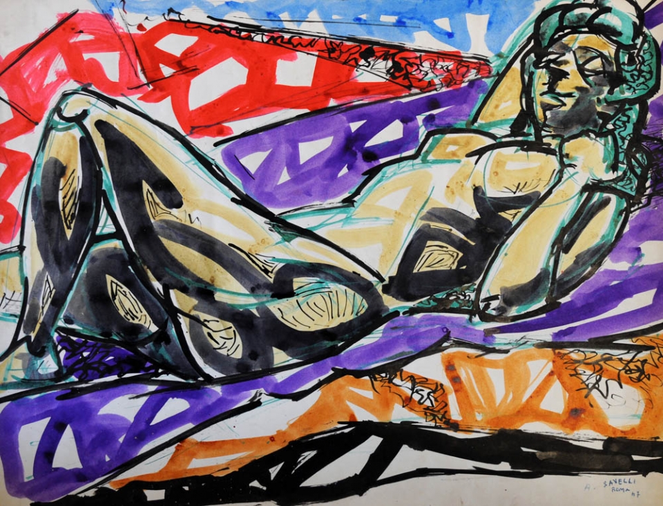 ANGELO SAVELLI 1911 - 1995 Senza titolo, 1947 Tecnica mista su carta, cm. 46 x 60,5 Firmato e datato in basso a destra Prov. Collezione Privata