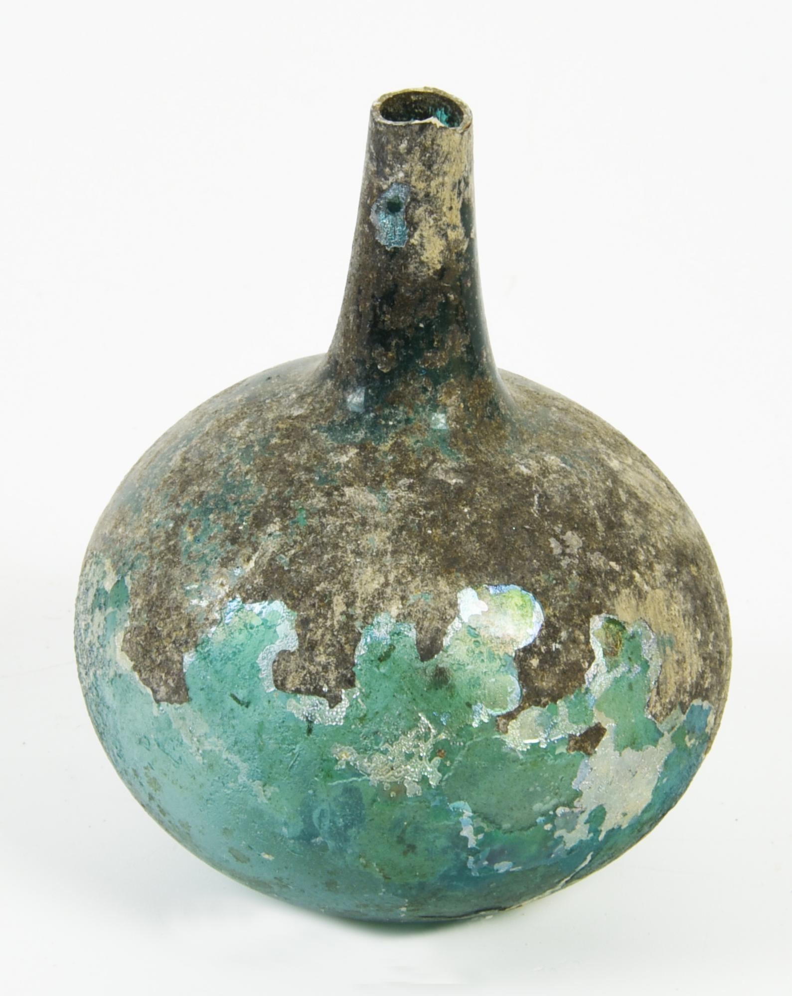 Unguentario con collo troncoconico, corpo globulare, fondo concavo