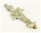 Amuleto in foggia del dio Osiride mummiforme, con corona Atef e braccia incrociate sul petto a sostenere il pastorale ed il flagello; base quadrangolare con anello per la sospensione