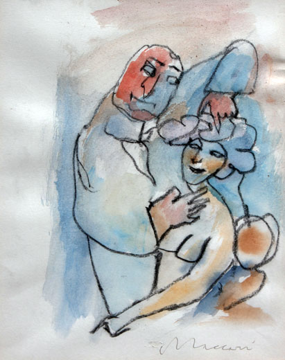 MACCARI Mino (Siena 1898 - Roma 1989) Senza titolo, anni 80 acquarello e tecnica mista su cartoncino, cm. 33 x 25.5 Autentica dell'Archivio Mino Maccari, a cura di Marco Maccari, con n° 4296 Firma 'Maccari' (in basso a destra)