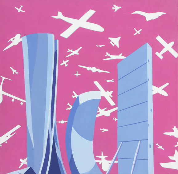 VENEZIANO Giuseppe (Mazzarino, 22/02/1971) Milano città europea, 2008 acrilico su tela, cm. 100 x 100 Autentica dell'artista su fotografia Bibliografia: L. Beatrice, 'Giuseppe Veneziano. Pregiudizio universale', Angel Art Gallery, Milano, 17 aprile-18 maggio 2008 Titolo, data, tecnica, misure, firma 'Milano città europea, 2008, acrilico su tela, cm. 100x100, Giuseppe Veneziano' (al retro)