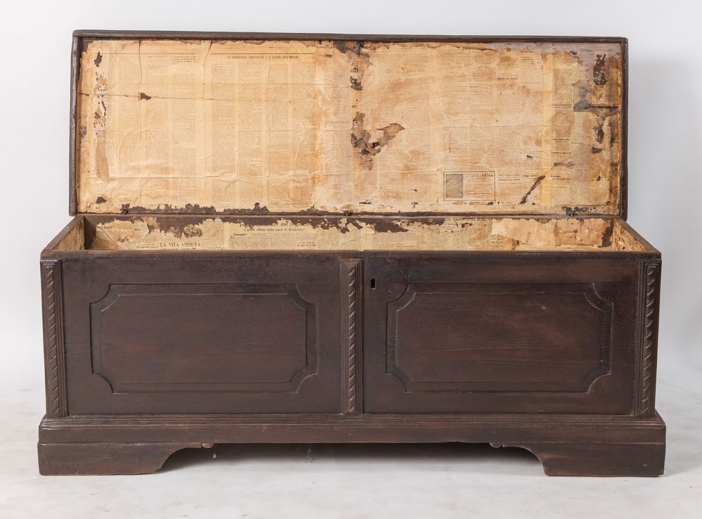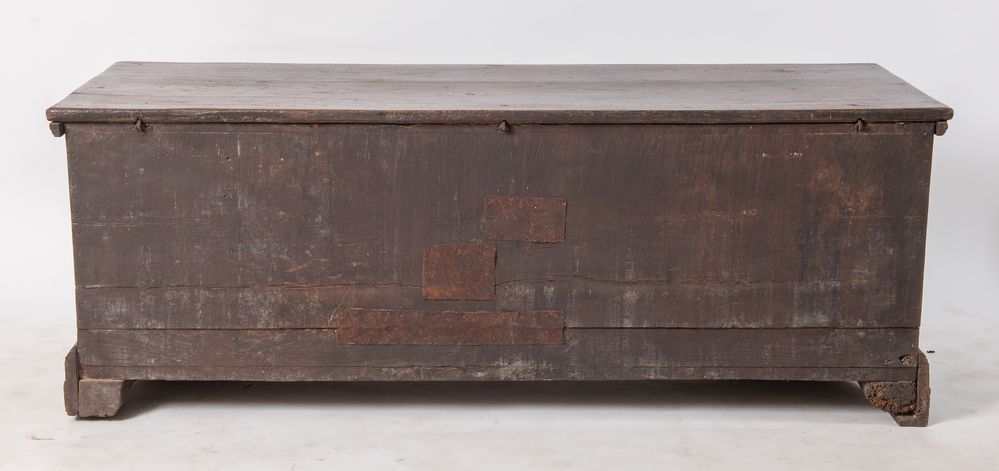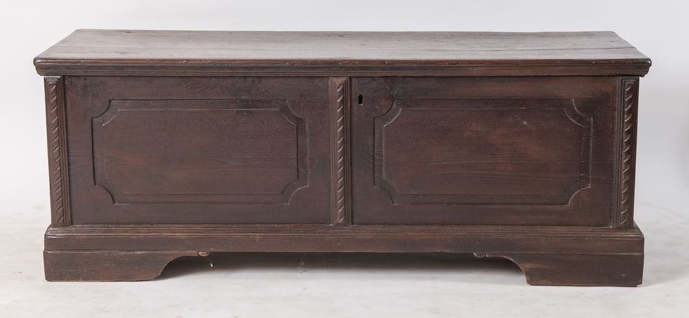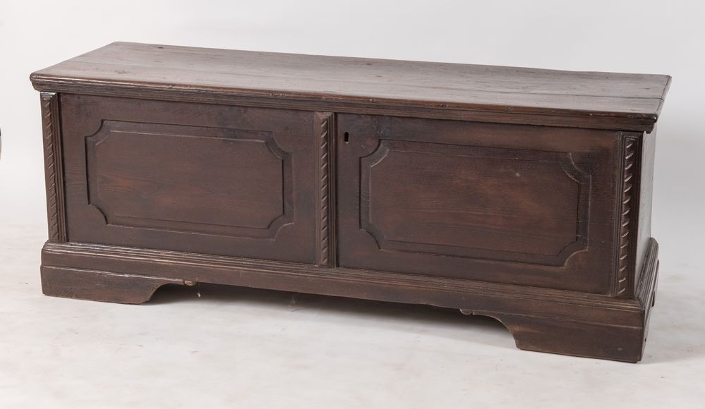 Cassapanca rustica in legno di castagno. Lombardia, fine del XVII secolo. Cm...