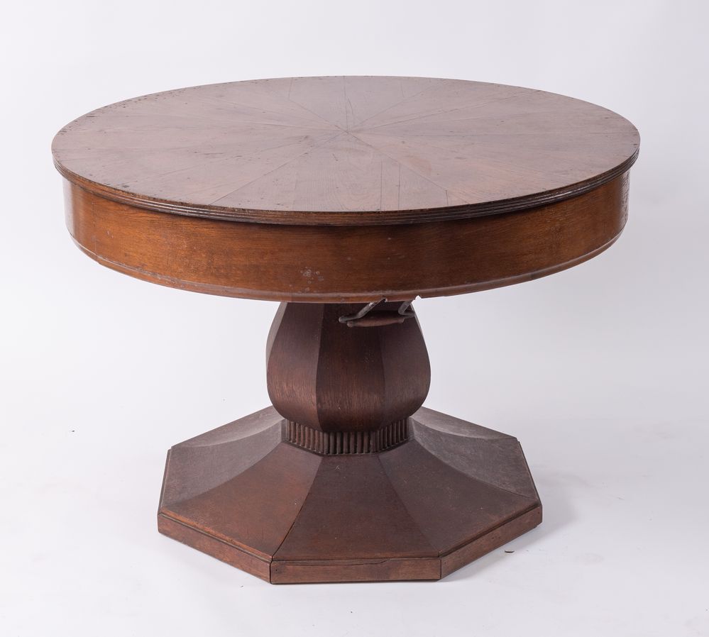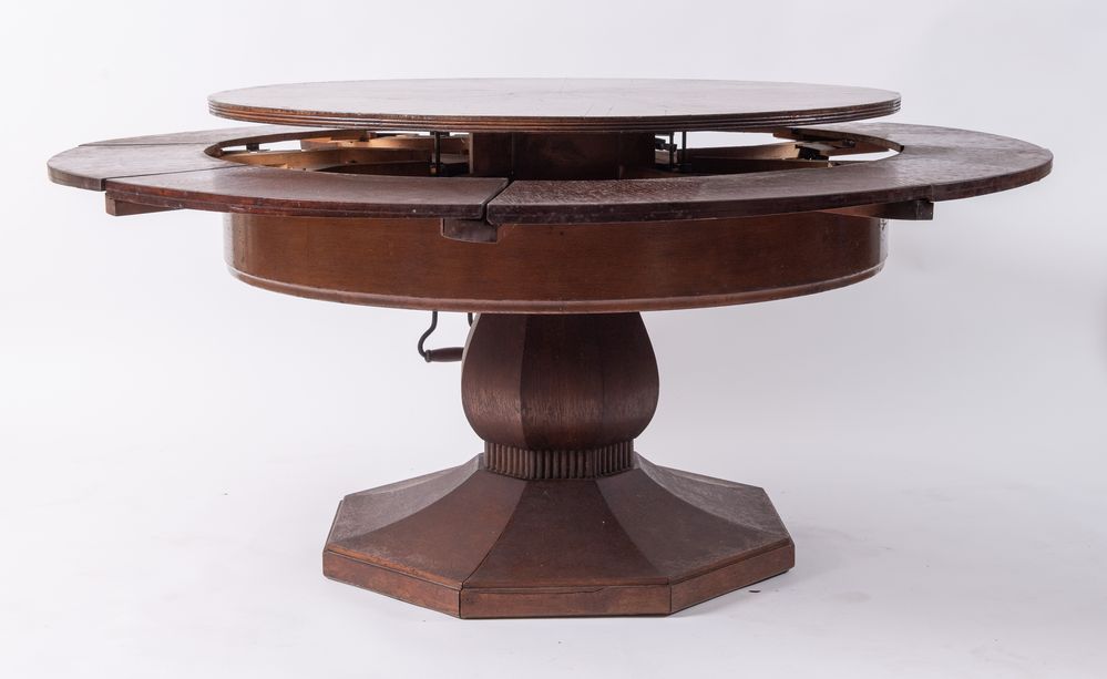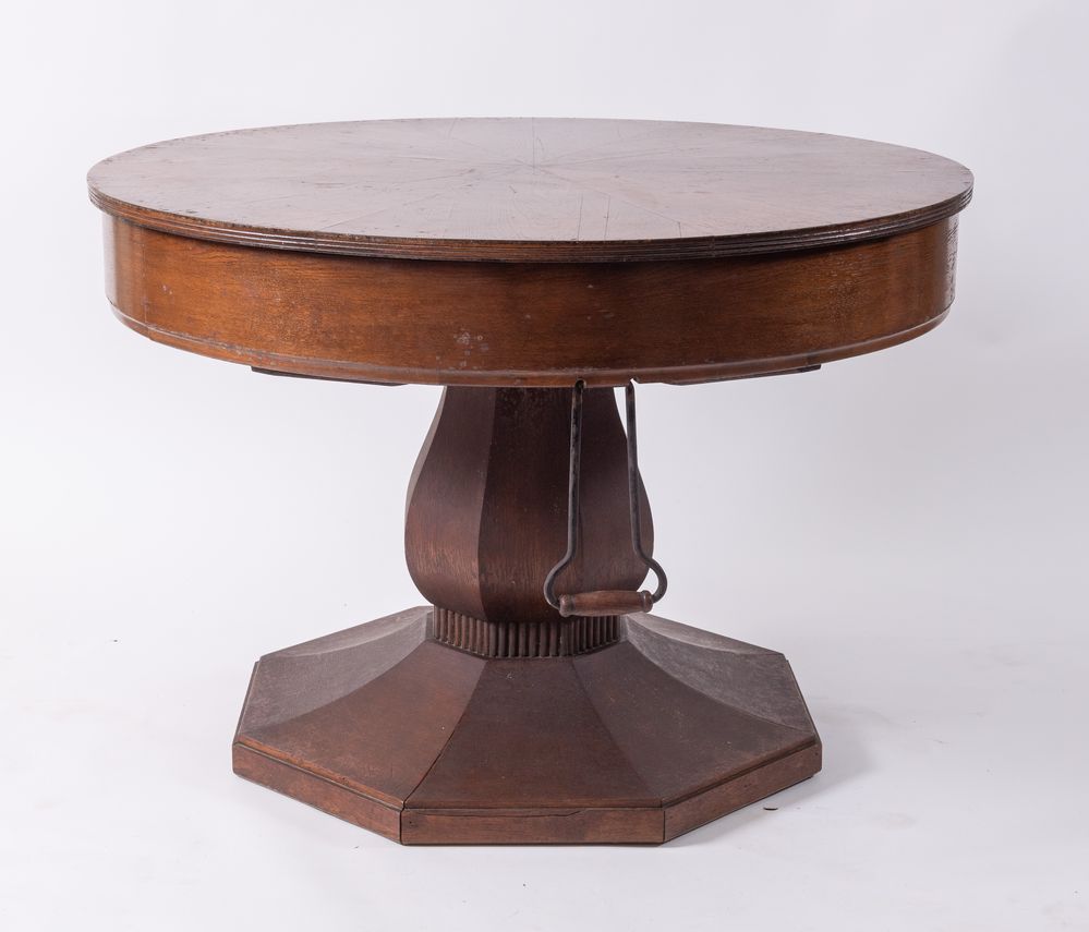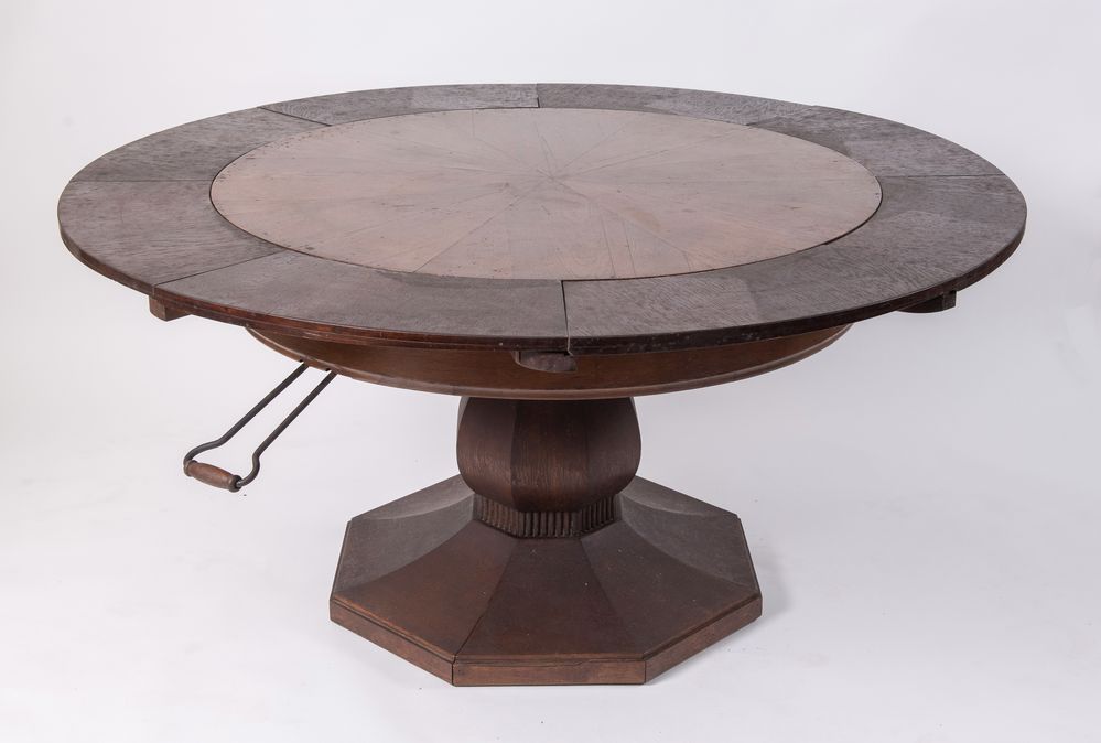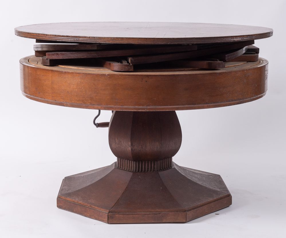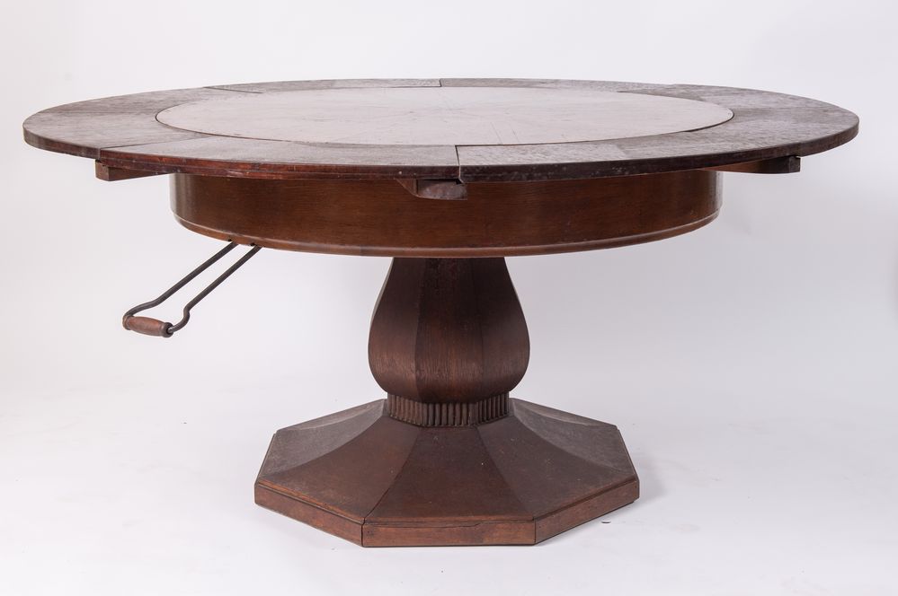 Tavolo navale lastronato in rovere con curioso meccanismo per allargare il...