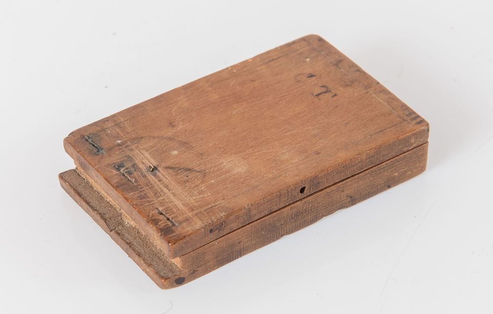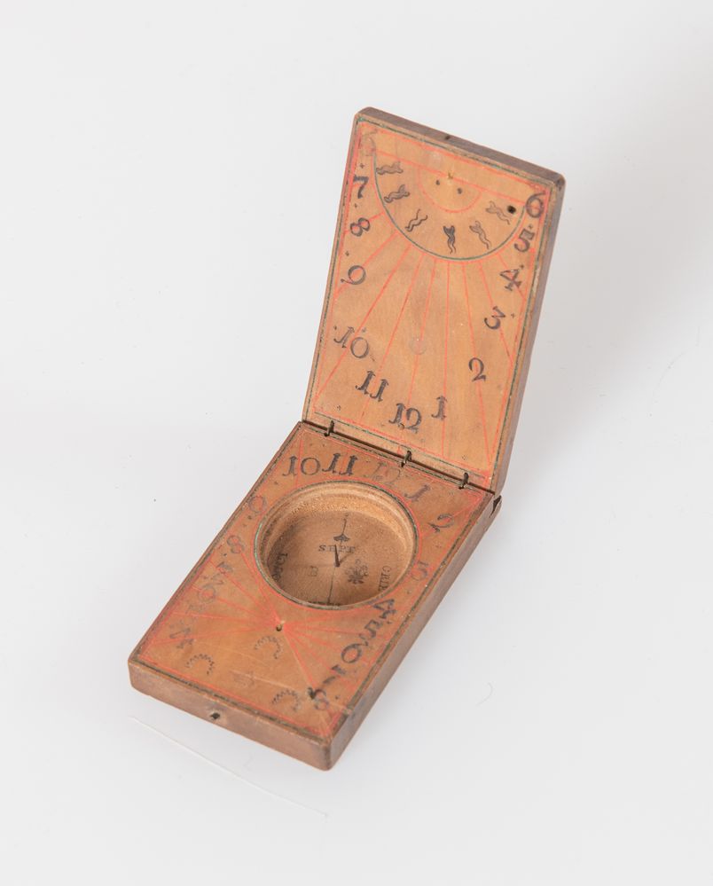 Orologio solare in legno. XVIII secolo. Cm 1,5x4,7x8.