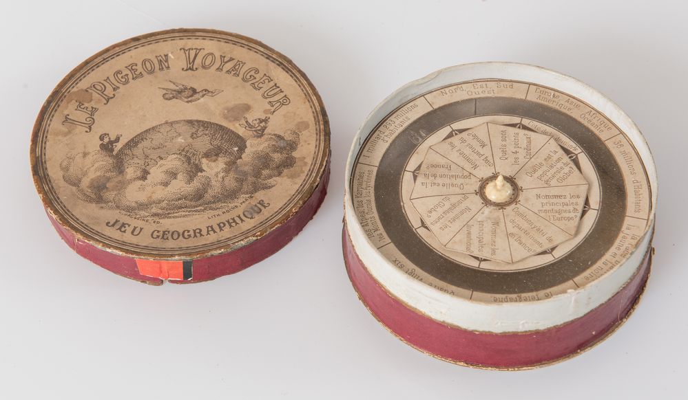Gioco magnetico "Il piccione viaggiatore". Francia, XIX secolo. Cm 10,9Ø.