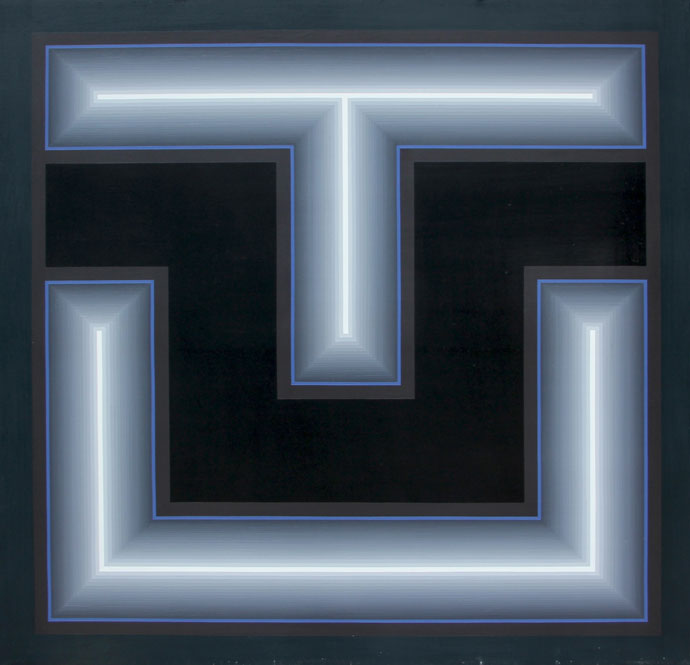 SERNAGLIA Rino (Montebelluna, 1936) Rapporto positivo-negativo, 1973 acrilico su tela, cm. 100 x 100 Autentica dell'artista su fotografia Firma, data, dedica, titolo, misure, tecnica 'R. Sernaglia, 1973, Rapporto positivo-negativo, cm 100x100, acrilico' (al retro)