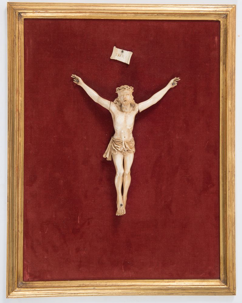 Cristo in materiale prezioso. Francia, metà XIX secolo. Cm 45,5x35,5. (lievi...