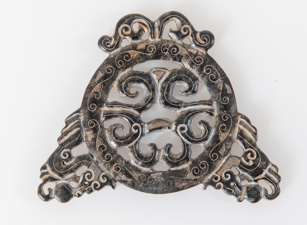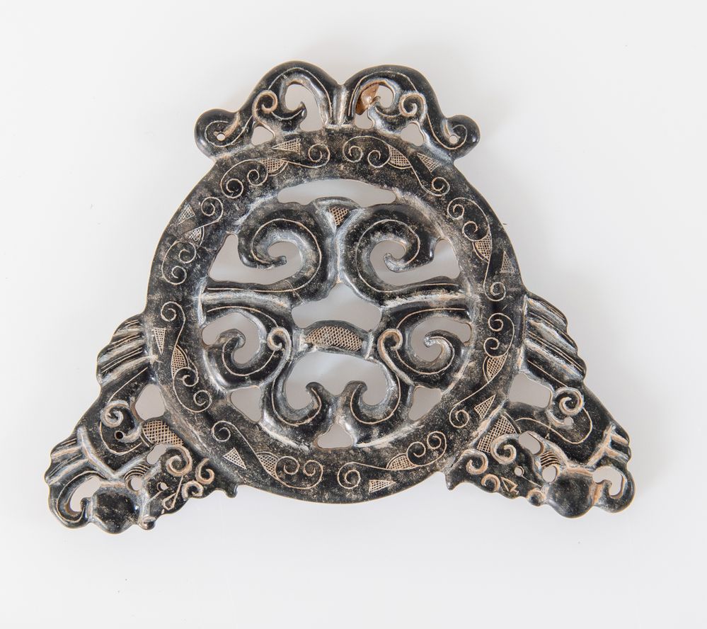 Antico medaglione in giada. Cina/Tibet. Cm 13x20,5. (rotture e restauri)