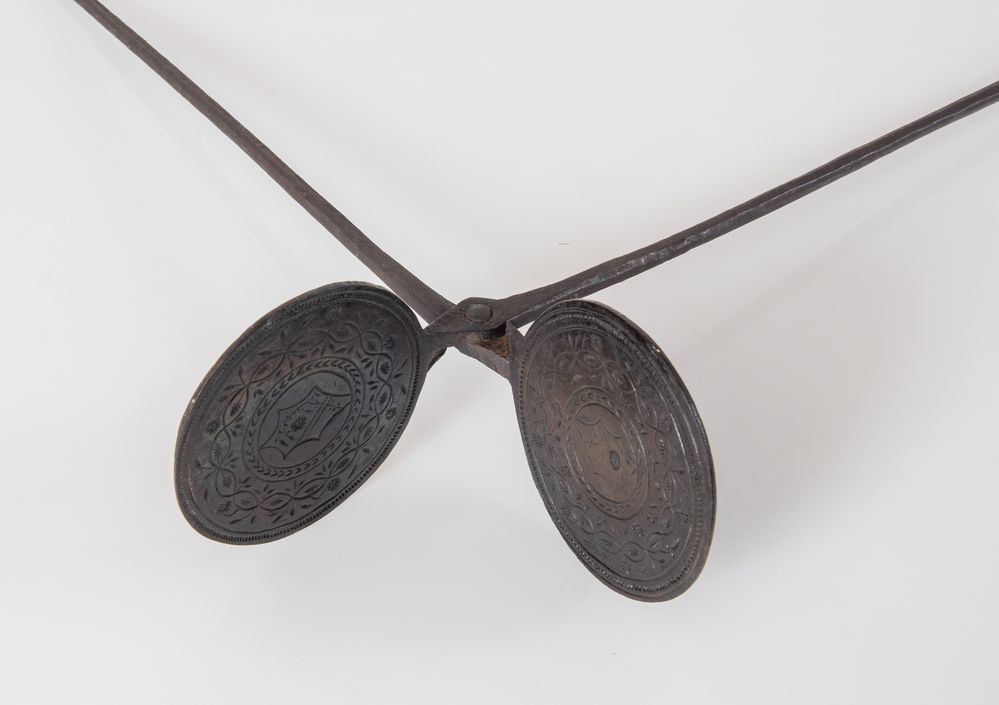 Ferro per ostie in ferro forgiato. Reca decori con stemma nobiliari all'interno. Fine XVII - inizi XVIII secolo. Cm 76x13,5.