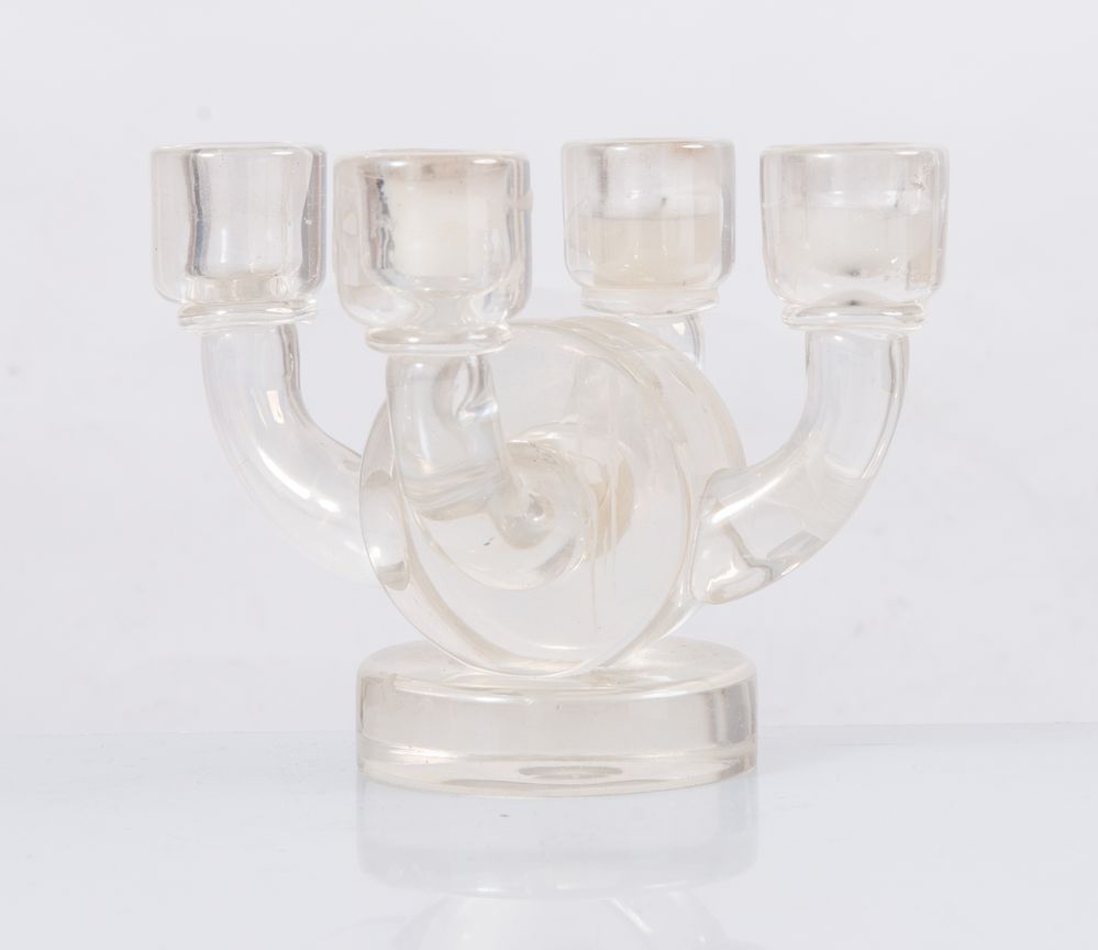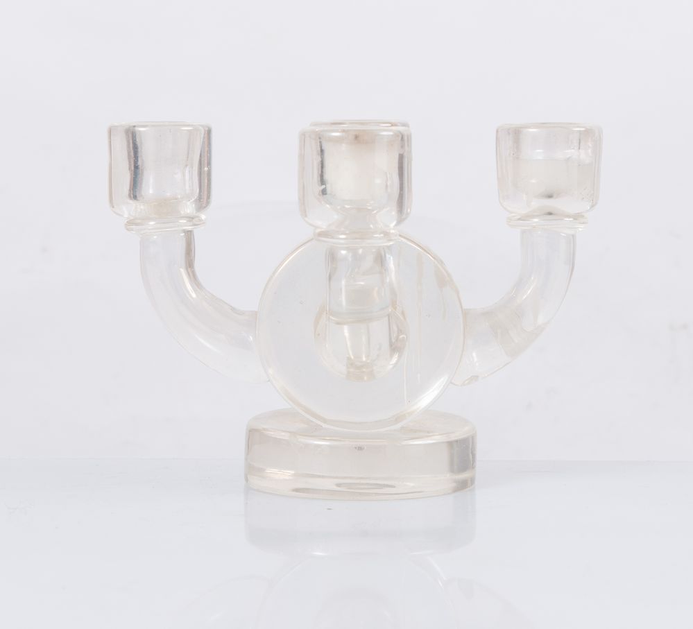Portacandela in vetro con quattro braccia. Cm 13,5x18,5x16,4.