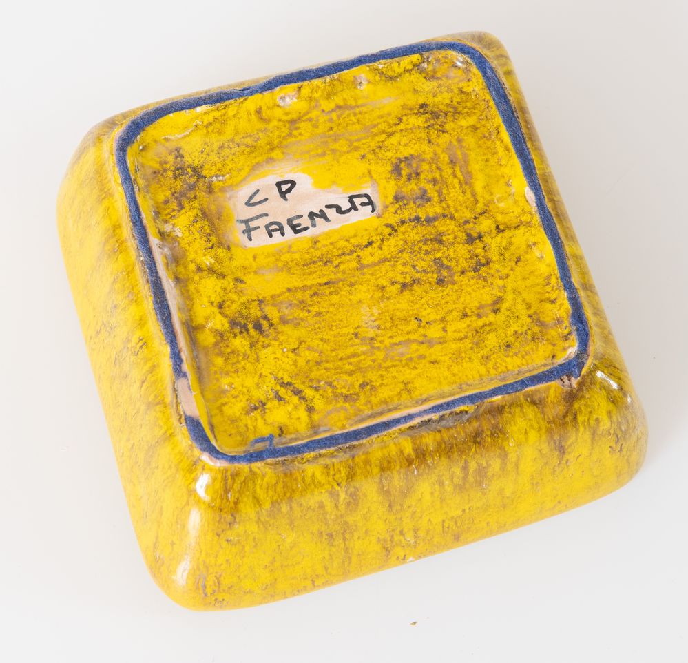 Lot 160 | CARLO ZAULI (Faenza 1926 - 2002) Vassoio giallo. Anni '50. Cm 6x15x15. Sotto...