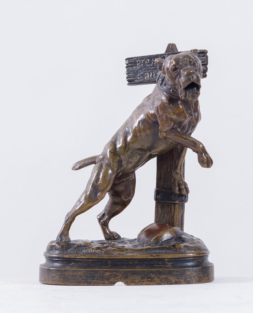 PROSPER LE COURTIER (Francia, 1855 - 1924) "Cane". Scultura in bronzo. Cm 15x11x6. Opera firmata alla base Le Courtier. Reca inscrizione incisa hors-concours.