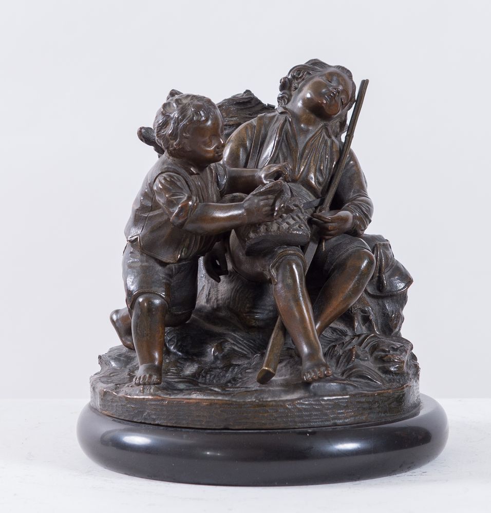 CYPRIEN FRANCOIS VENOT (1808 - 1886) "Cacciatori". Scultura in bronzo. Cm 17x15,5x15. Opera firmata alla base C. Venot. Reca marchio della fonderia.