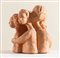"Figure". Scultura in terracotta. Sotto la base reca firma non decifrata. Cm 18x15x15,5.