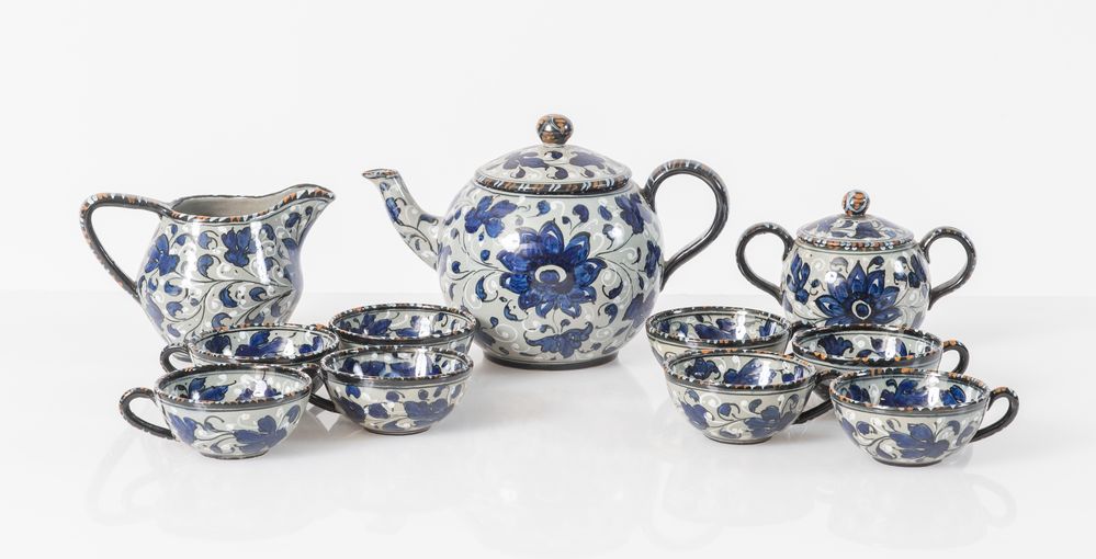 MAP, Pesaro. Servizio da tè in maiolica dipinta, composto da 11 elementi:...