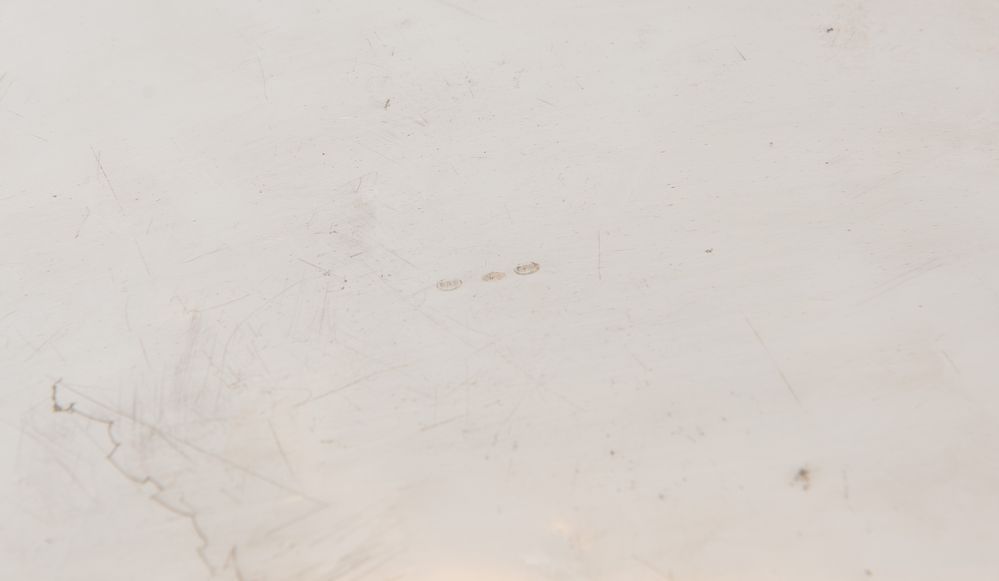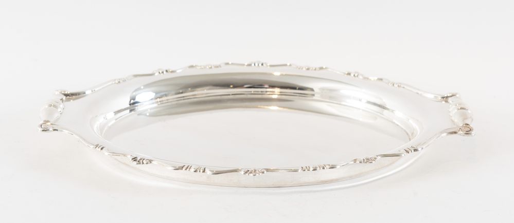 CASTAUDI & GAUTERO di EMANUELLI & PASTORE, Vercelli, XX secolo. Vassoio in argento 800. Sotto la base reca punzoni: 800, losanga locativa 3VC, 800. Cm 34,5x24,5x3. Peso: 430 gr.