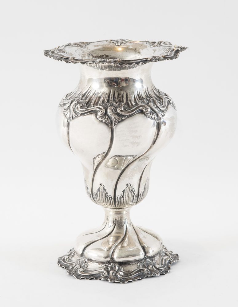 Vaso in argento 800. Sul manico reca iscrizione 20 Maggio 1916 - 1926. Non reca punzoni evidenti. Italia, inizi XX secolo. Cm 29x19. Peso: 884 gr.
