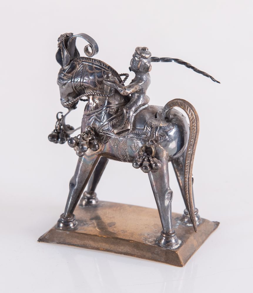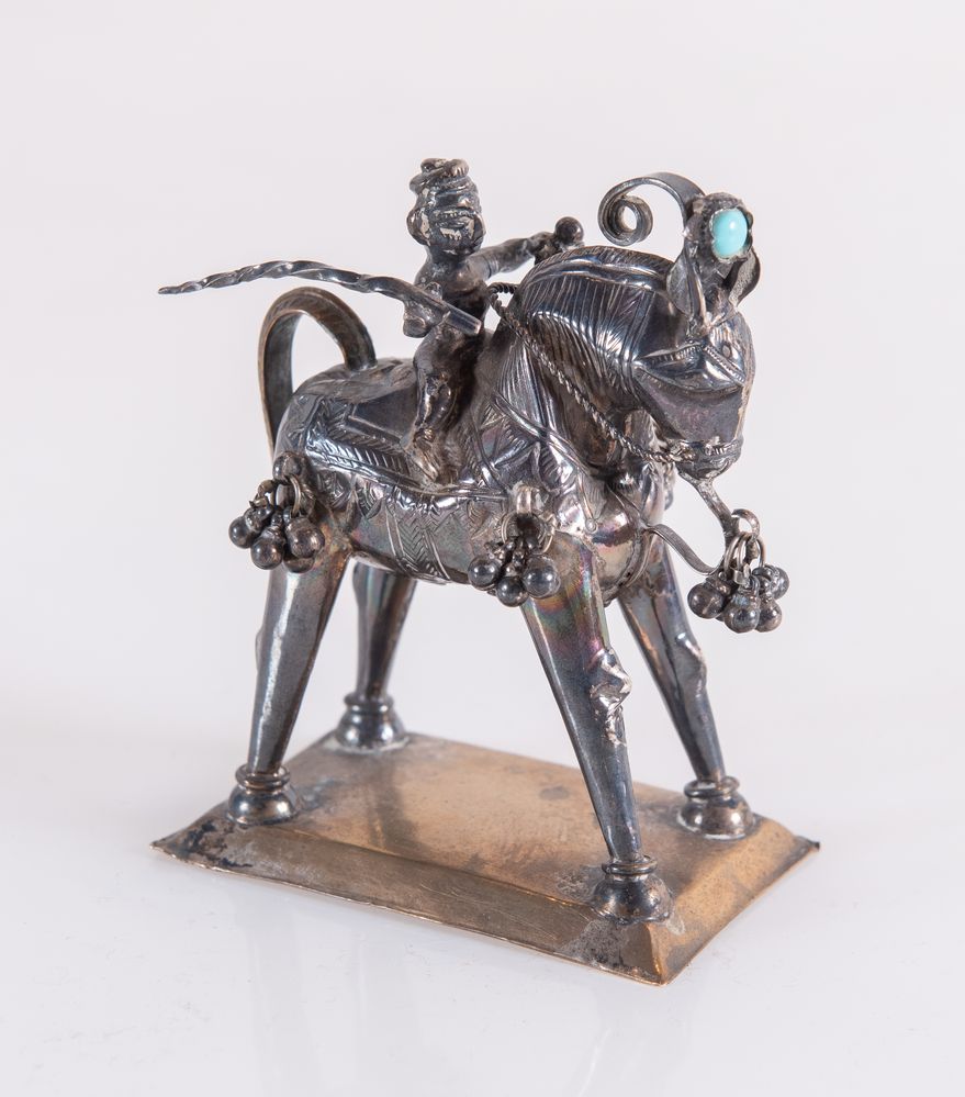 Cavallo parzialmente in argento con cabochon in pietra dura. Tibet? Non reca...