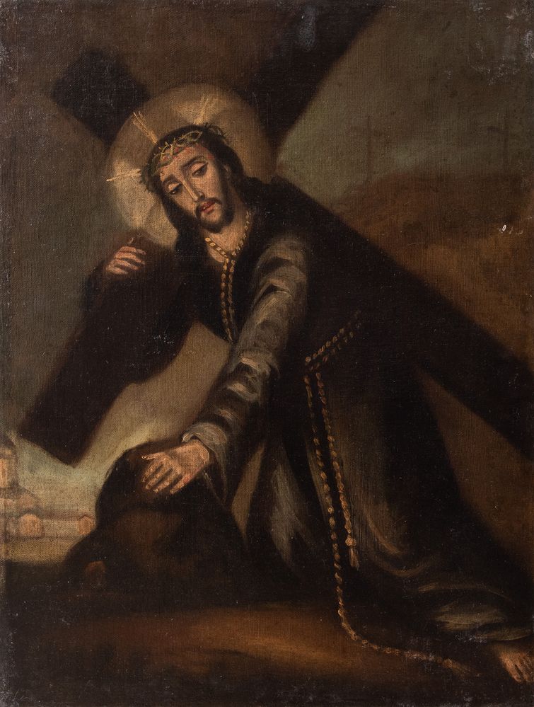 Lot 264 | Maestro spagnolo del XVII secolo. "Cristo che porta la Croce". Olio su tela....