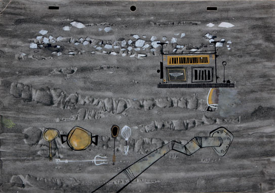 PASCALI Pino ((Bari 1935 - Roma 1968) Interno cucina tecnica mista su cartone, cm. 24.5 x 33.5 Autentica dell'Archivio Pino Pascali, con n° D3D086625F1EF8844BB756 Dichiarazione di autenticità di Sandro Lodolo (al retro)