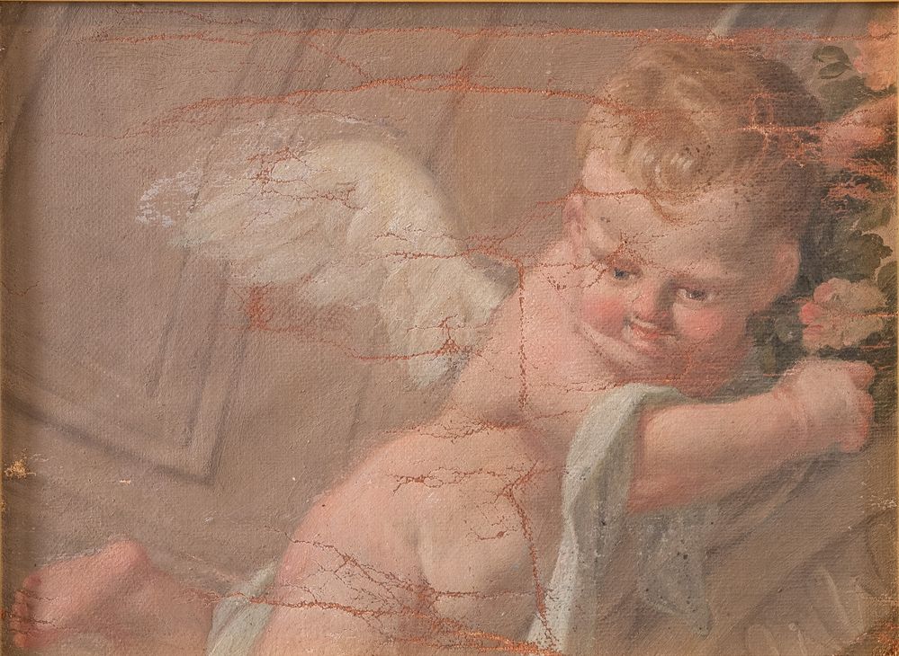 Maestro del XVII secolo. "Angelo". Olio su tela. Cm 31x42,5. (frammento)