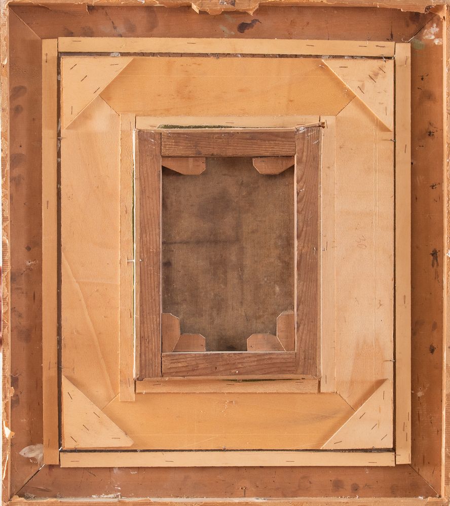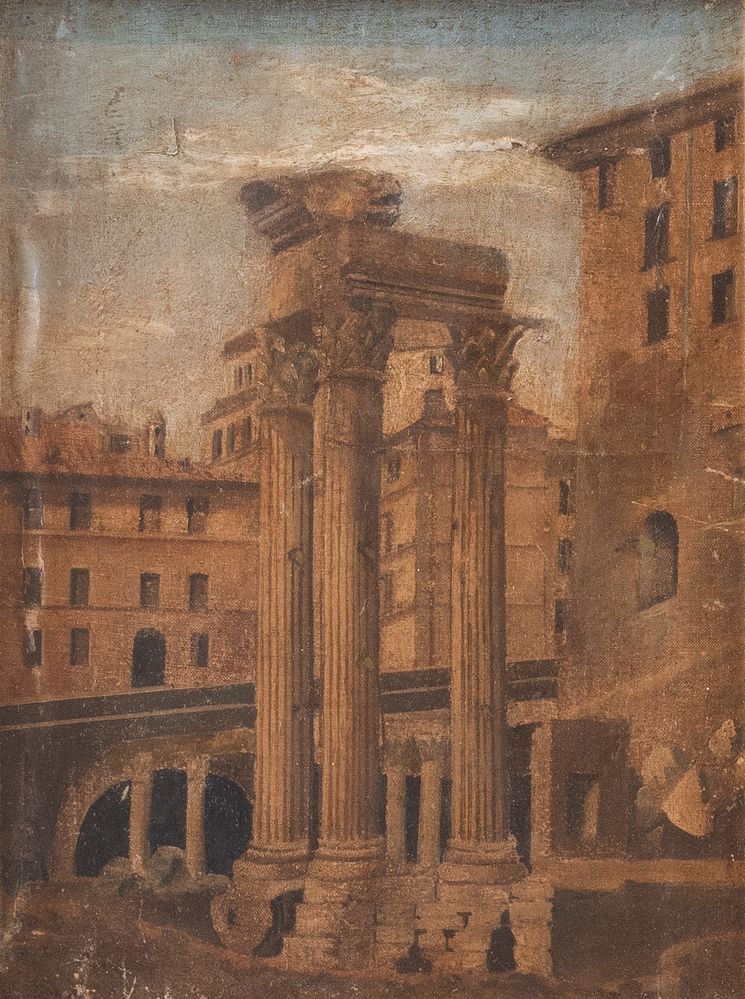 Maestro degli inizi del XIX secolo. "Capriccio architettonico". Olio su tela. Cm 32x24.