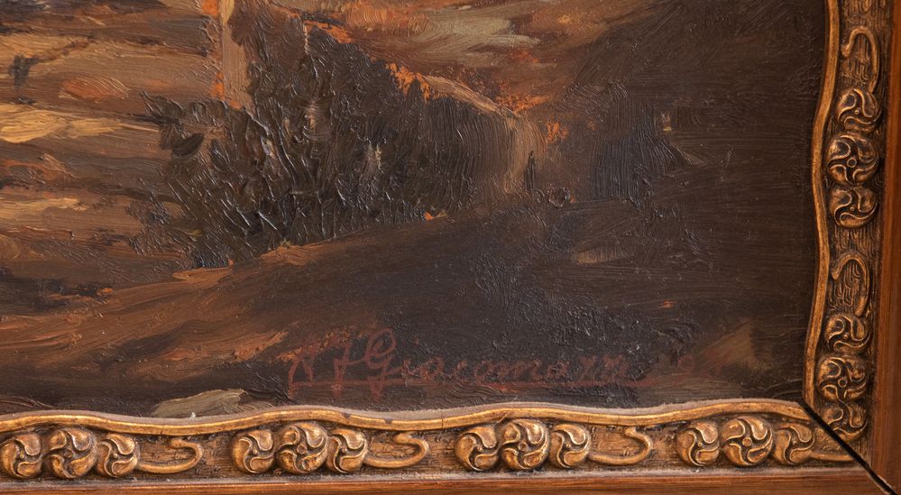 ALBERTO GIACOMAZZI (Venezia 1890 - Bologna 1969) "Paesaggio Fiammingo", 1921....