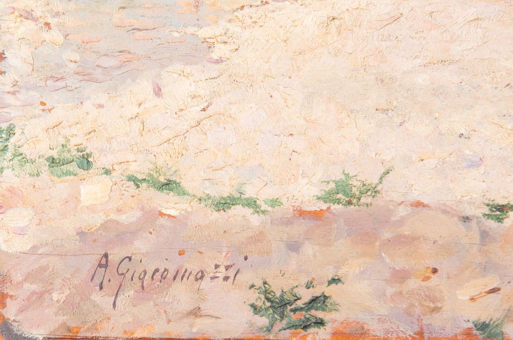 ALBERTO GIACOMAZZI (Venezia 1890 - Bologna 1969) "Monte Aviolo", 1931. Olio su tavola. Cm 50x60. Opera firmata in basso a sinistra A. Giacomazzi. Al retro reca firma e data Alberto Giacomazzi 1931.
