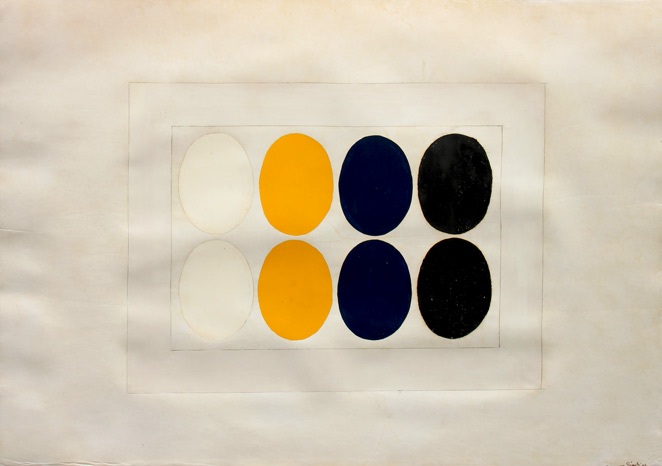 SIMETI Turi (Alcamo 1929) Otto ovali, 1968 tecnica mista su cartoncino, cm. 70 x 100 Autentica dell'artista su fotografia Firma, data 'Simeti, 68' (in basso a destra)