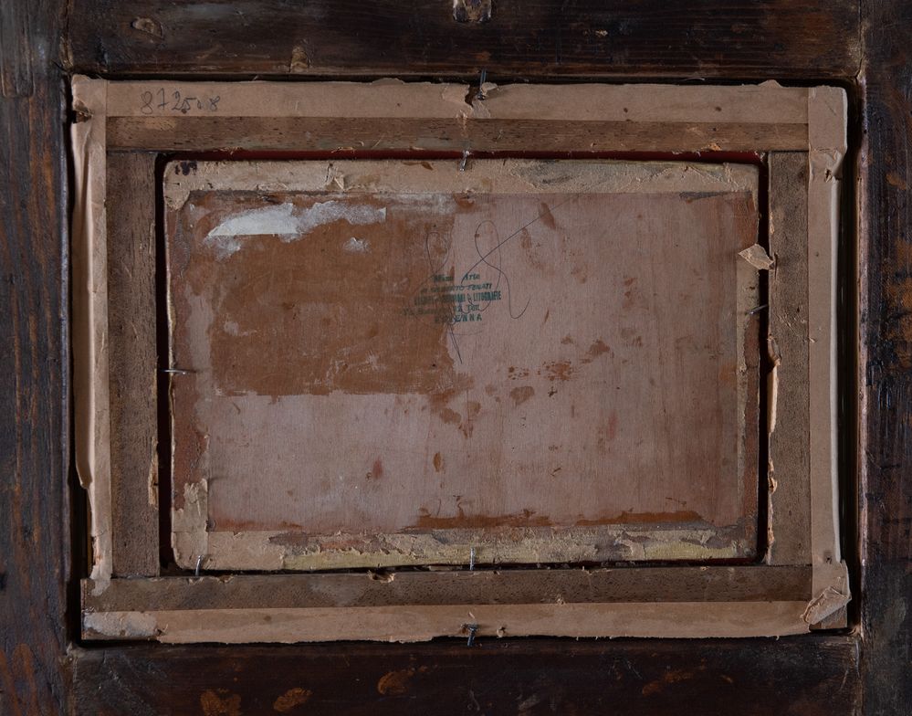 MARIO PUCCINI (Livorno 1869 - Firenze 1920) attr. "Barche". Olio su tavola. Cm 17x26. Opera firmata in basso a sinistra M. Puccini. Al retro reca timbro Mirò Arte, Ravenna.