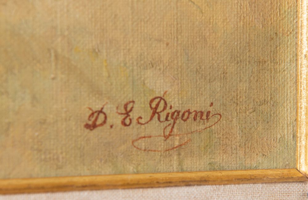 D. E. RIGONI "Paesaggio". Olio su tela. Cm 60x30. Reca firma in basso a destra D. E. Rigoni.