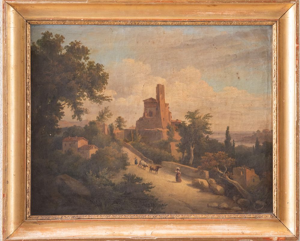 Maestro del XIX secolo. "Campagna romana". Olio su tela. Cm 42x53.