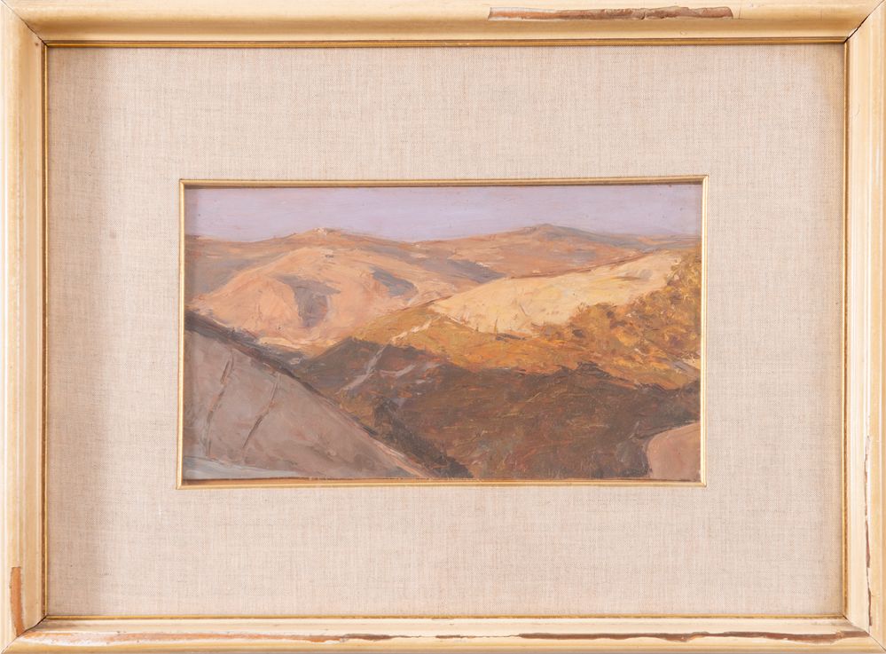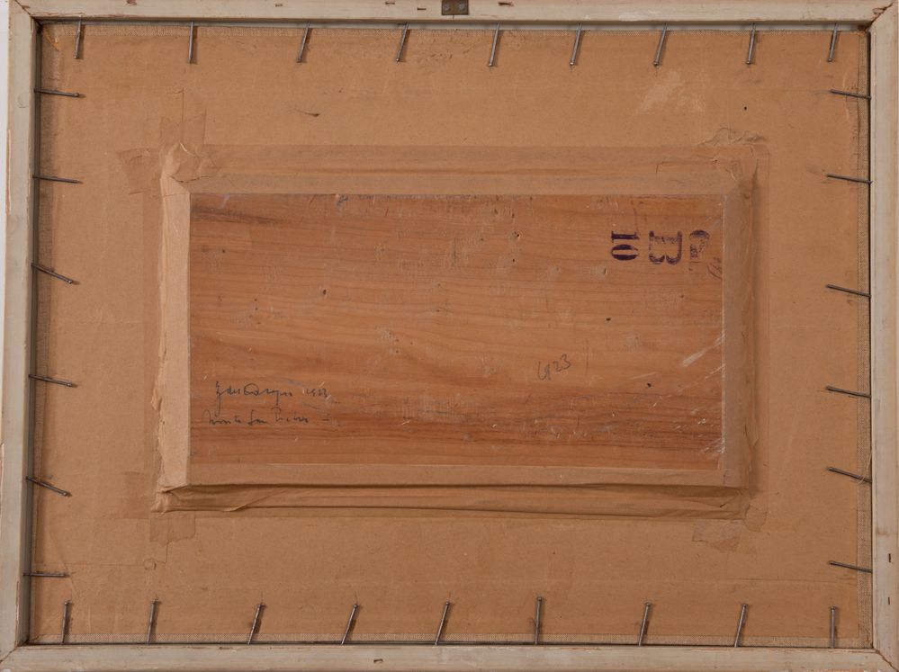 GAETANO DALL'ACQUA (Bologna 1897 - ?) "Monte San Pietro", 1923. Olio su tavola. Cm 17x32. Al retro reca firma, data e titolo G. Dall'Acqua 1923 Monte san Pietro.
