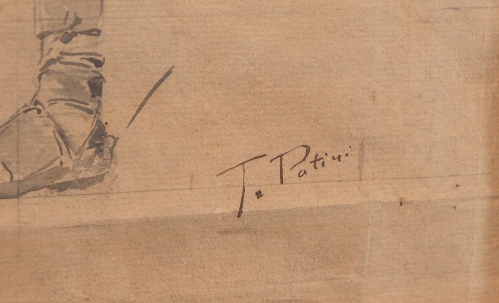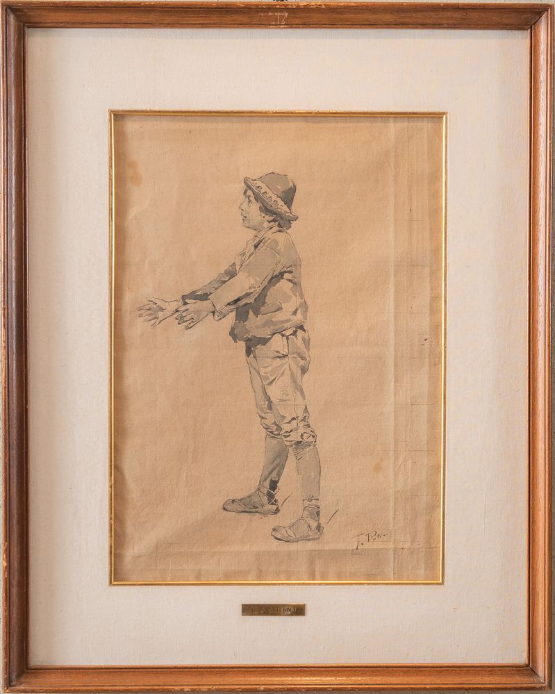 TEOFILO PATINI (Castel di Sangro 1840 - Napoli 1906) "Fanciullo". Acquerello e china su carta. Cm 42x30. Opera firmata in basso a destra T. Patini.