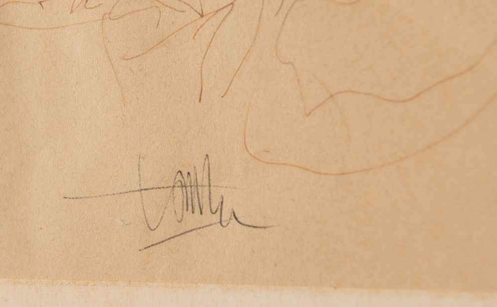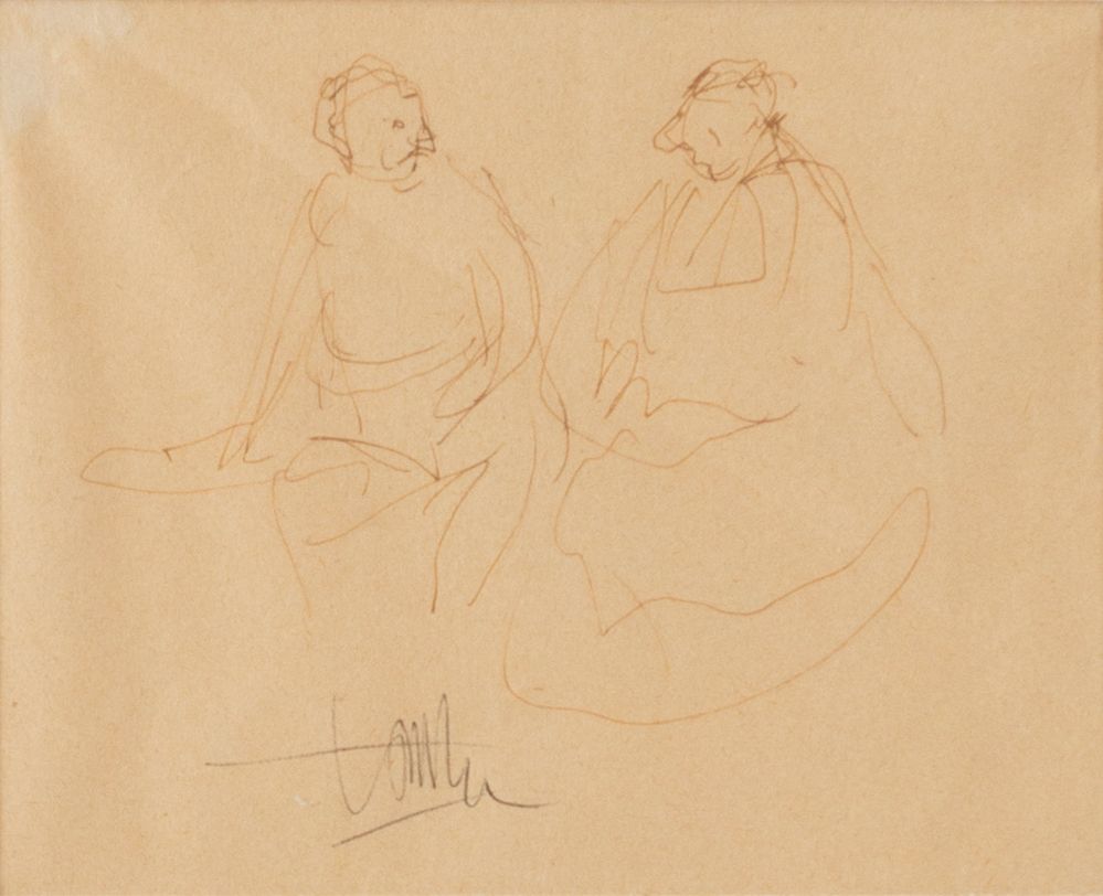 CLETO TOMBA (Castel San Pietro Terme 1898 - Bologna 1987) "Due figure". Disegno su carta. Cm 12x15. Opera firmata in basso al centro Tomba.