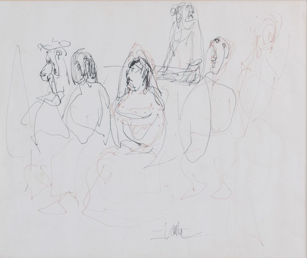 CLETO TOMBA (Castel San Pietro Terme 1898 - Bologna 1987) "Figure". China su carta. Cm 22,5x27. Opera firmata in basso al centro Tomba.