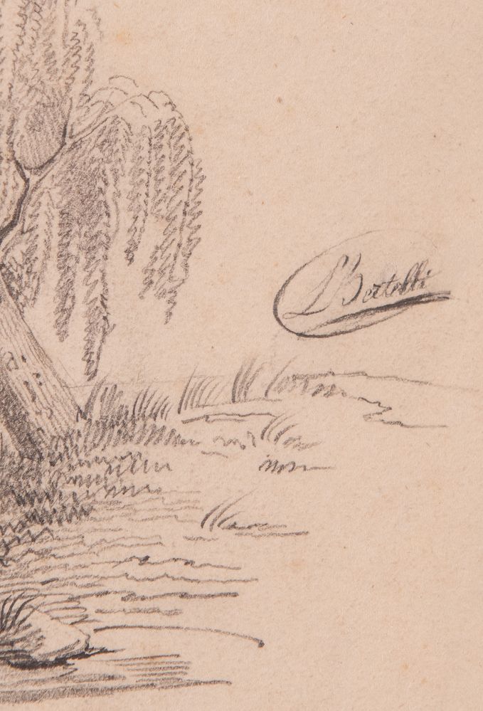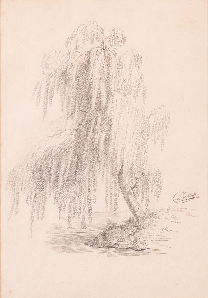 LUIGI BERTELLI (San Lazzaro di Savena 1833 - Bologna 1916) "Albero". Disegno su carta. Cm 30x21. Opera firmata in basso a destra L. Bertelli.