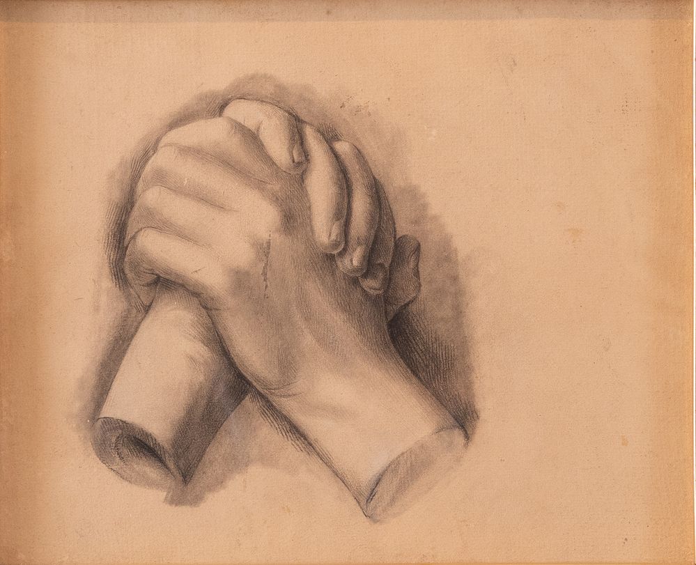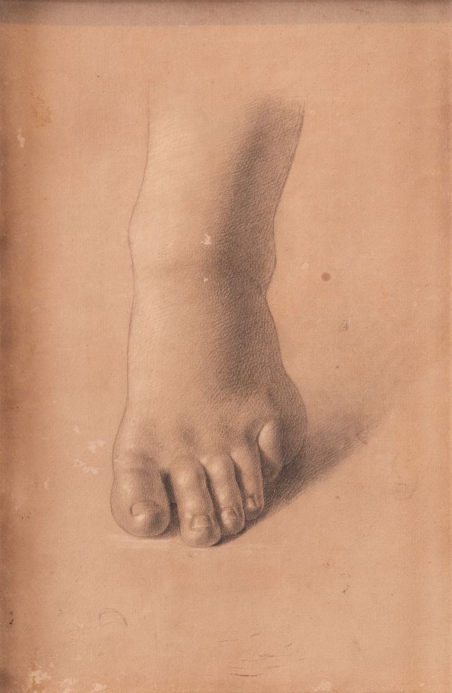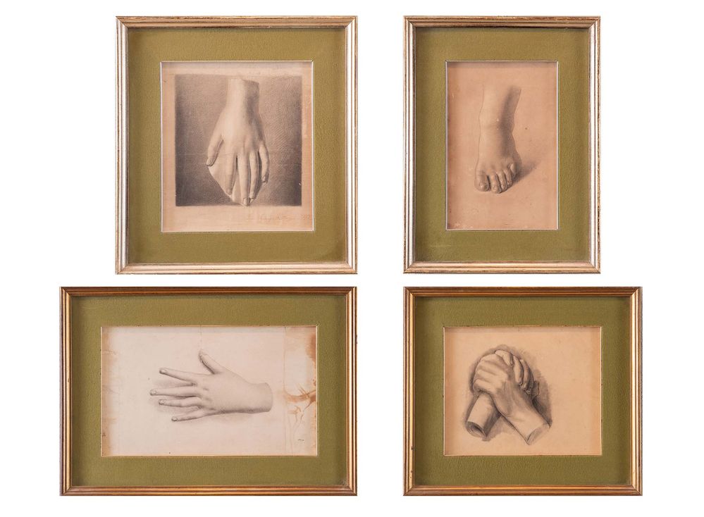 Maestro del XIX secolo. Lotto composto da quattro studi anatomici. Disegni su carta riportata su tela. Rispettivamente di cm 25,5x30, cm 25,5x40,5, cm 30,5x20,5, cm 27x30,5.